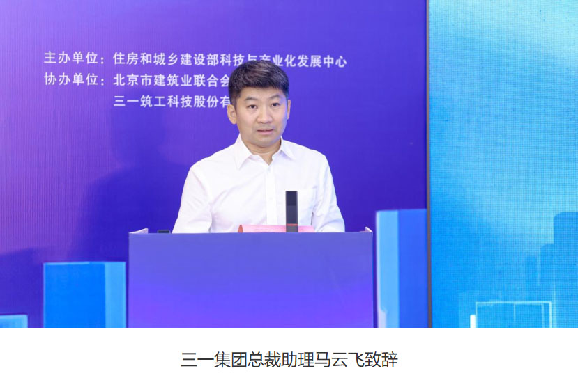 三一集团总裁助理马云飞致辞,他对大家的到来表示热烈的欢迎。他指出,三一集团将会同更多合作单位,共同推动智能建造与建筑工业化协同发展。